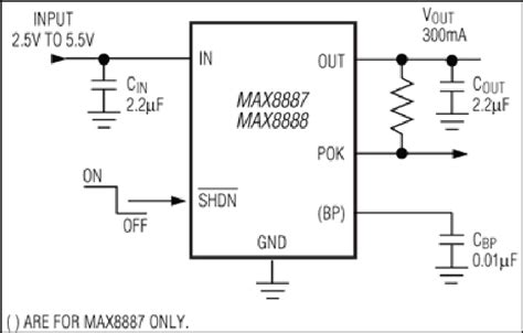 The MAX8887/MAX8888 low-dropout linear regulators operate from 2.5V to 5.5V and deliver up to 300mA continuous ( ...
